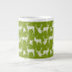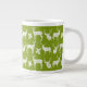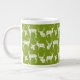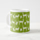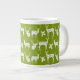 A bright, fun mug for winter for all your winter hot chocolate, coffee, even soup or chilli! This jumbo speciality mug features rustic silhouette white deer, both bucks and does, on a background of green!