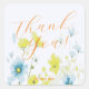 Rustic Simple Blue Yellow Poppies Watercolor Square Sticker