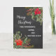 Merry Christmas for sister and brother in law card in rustic watercolor poinsettias and foliage and chalkboard background.