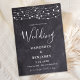 Invite friends and family to your wedding with these elegant yet rustic chalkboard and string lights wedding invitation cards. These unique slate all in one wedding invitations feature elegant white string lights on grey chalkboard slate design with wedding website qr code for easy RSVP's. Personalise these chalkboard wedding invitations with names, wedding date, and location. See our wedding collection for unique wedding invitations, wedding photo albums, guest books, party gifts, and more! COPYRIGHT © 2020 Judy Burrows, Black Dog Art - All Rights Reserved. Rustic Slate String Lights County QR Code Wedding Invitation