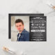 Add a photo for a fresh and hip trendy chalkboard themed 2-sided flat graduation party invitation, just like the old school blackboard. Personalise this cool holiday card with your name and year. Rustic and vintage slate chalkboard black board theme is great for celebration. dark charcoal grey and black background with white chalk look lettering and antique theme decos.