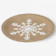 These rustic holiday plates feature a faux kraft paper look background, with a wintry white snowflake in the centre.
