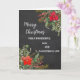Merry Christmas for son and daughter in law card in rustic watercolor poinsettias and foliage and chalkboard background.