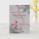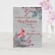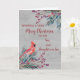 Merry Christmas for son and daughter in law card with watercolor foliage, a cardinal and wood pattern and thoughtful verse.