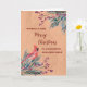 Merry Christmas for son and his family card with rustic watercolor greenery and cardinal and vintage paper pattern.