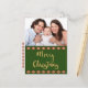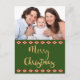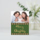 The festive holiday design on the front of this postcard features a photo in the top half, which you can replace with your own photo. On the bottom half are the words "Merry Christmas" in popular gold script typography on a forest green background framed by a southwestern diamonds above and below. The back of the card has the words, "And a Happy New Year" in matching gold script typography on a white background, followed by two green "from" lines that you can personalise, framed by southwestern diamonds above and below. A customisable return address also appears in the upper left on the back of the postcard, to save you time when writing out your holiday postcards.