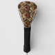 Warm geometric stripe pattern golf head cover featuring tribal-inspired diamonds, zigzags, and textured vertical bands in earthy brown, terracotta, tan, beige, and charcoal tones. A cozy boho design ideal for southwestern décor lovers, rustic style fans, and anyone drawn to earthy, handcrafted aesthetics.