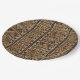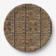 Warm geometric stripe pattern paper plate featuring tribal-inspired diamonds, zigzags, and textured vertical bands in earthy brown, terracotta, tan, beige, and charcoal tones. A cozy boho design ideal for southwestern décor lovers, rustic style fans, and anyone drawn to earthy, handcrafted aesthetics.