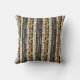 Warm geometric stripe pattern throw pillow featuring tribal-inspired diamonds, zigzags, and textured vertical bands in earthy brown, terracotta, tan, beige, and charcoal tones. A cozy boho design ideal for southwestern décor lovers, rustic style fans, and anyone drawn to earthy, handcrafted aesthetics.
