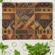 Warm geometric stripe pattern kitchen towel featuring tribal-inspired diamonds, zigzags, and textured vertical bands in earthy brown, terracotta, tan, beige, and charcoal tones. A cozy boho design ideal for southwestern décor lovers, rustic style fans, and anyone drawn to earthy, handcrafted aesthetics.