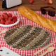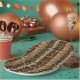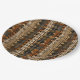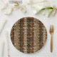 Warm geometric stripe pattern paper plate featuring tribal-inspired diamonds, zigzags, and textured vertical bands in earthy brown, terracotta, tan, beige, and charcoal tones. A cozy boho design ideal for southwestern décor lovers, rustic style fans, and anyone drawn to earthy, handcrafted aesthetics.
