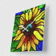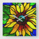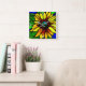Rustic Stained Glass Look Country Sunflower Square Wall Clock