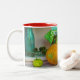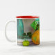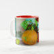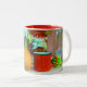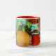 A colourful mug featuring a photo of garden still life with a sunny orange pumpkin, a milk can and a red mug. A charming rustic accent to your kitchen decor, great gift for foodies and gardening lovers.