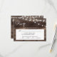 This barn wood and string lights wedding RSVP is perfect for a rustic wedding. This RSVP features string lights on a barn wood background. Make this RSVP card your own by your RSVP date. For further customisation, please click the "customise further" link and use the advanced design tool to modify this template.
