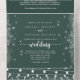 This rustic string lights calligraphy green wedding all in one invitation is perfect for a classic wedding. The design features beautiful hand-painted string lights with splendid stars in a green background.