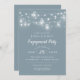 Affordable custom printed wedding engagement party invitations with an easy to use template for customisation. This rustic chic design features strands of glowing string lights and mason jars on a dusty blue background. Personalise the invite with your engagement party details or customise the text to use for any event. Use the design tools to choose any background colour, add photos and customise the text fonts and colours to make a unique design for your engagement party.