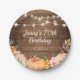 Rustic String Lights Fall Pumpkin Happy Birthday Paper Plate