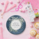 Featuring pretty string lights and delicate watercolor greenery leaves on a rustic blue wood background, these chic botanical bridal shower paper plates can be personalised with your special bridal shower information. Designed by Thisisnotme©