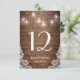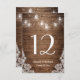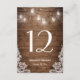 Rustic String Lights Lace Wedding Table Number Card.