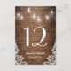 Rustic String Lights Lace Wedding Table Number