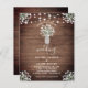 This affordable wedding design features dainty watercolor baby's breath flowers in a mason jar vase on a rustic wood background with string lights. Click the customise button for more flexibility in modifying the text. Variations of this design, different paper types, as well as coordinating products are available in our shop, zazzle.com/store/doodlelulu. Contact us if you need this design applied to a specific product to create your own unique matching item! Thank you so much for viewing a DoodleLulu by 2 june bugs design!