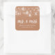 Rustic String Lights Mr. and Mrs. Wedding Monogram Square Sticker