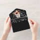 The all-in-one format includes an integrated RSVP section with a QR code that links directly to your wedding website, allowing guests to respond easily and access wedding details in one place. With space for two photos, this invitation delivers a personal, organised, and visually striking experience without the need for separate RSVP or details cards.