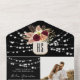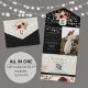 This rustic string lights all-in-one wedding invitation is created for couples who want an elegant, modern solution with fewer paper pieces. Featuring a romantic photo layout, soft floral details, and a refined black and ivory base accented with subtle burgundy florals, this design blends warmth, sophistication, and functionality.