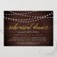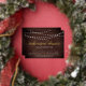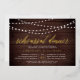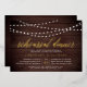 Our rustic elegant rehearsal dinner or cocktail party invitations feature a dark wood plank background with strings of white lights across the top, and "rehearsal dinner" in chic gold foil calligraphy script typography. Personalise with your ceremony rehearsal and rehearsal dinner details beneath. Includes space for the rehearsal timing and church or venue address.