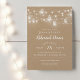 Affordable custom printed wedding rehearsal dinner invitations with an easy to use template for customisation. This rustic chic design features strands of glowing string lights and mason jars on a faux kraft paper background. Personalise the invite with your rehearsal dinner party details or customise the text to use for any event. Use the design tools to add photos and customise the text fonts and colours to make a unique design for your wedding rehearsal party.