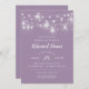 Affordable custom printed wedding rehearsal dinner invitations with an easy to use template for customisation. This rustic chic design features strands of glowing string lights and mason jars on a dusty lilac background. Personalise the invite with your rehearsal dinner party details or customise the text to use for any event. Use the design tools to choose any background colour, add photos and customise the text fonts and colours to make a unique design for your wedding rehearsal party.