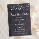 Save The Date! Announce your wedding to friends and family with these rustic chalkboard and string lights save the date cards. Personalise with names, wedding date, location. These unique slate wedding save the cards will make a lasting impression, your guests will make sure to save the date! COPYRIGHT © 2020 Judy Burrows, Black Dog Art - All Rights Reserved. Rustic String Lights Slate Wedding Save The Date Note Card
