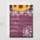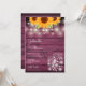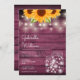A stylish rustic wedding invitation featuring pretty sunflowers, string lights and mason jars. The happy couple's names are set in an elegant script above the special wedding details on a rustic burgundy red wood background. The reverse features your monogram initials set within a matching sunflower. Designed by Thisisnotme©