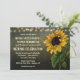 Rustic String Lights Sunflower Wedding Invitations - features a rustic background with string lights and a sunflower. Text features a rustic carved like font for names and wedding celebration.