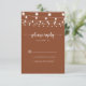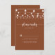 These rustic string lights terracotta calligraphy RSVP cards are perfect for a classic wedding. The design features beautiful hand-painted string lights in a terracotta background.
