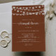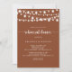 This rustic string lights terracotta rehearsal dinner invitation is perfect for a simple event. The design features beautiful hand-painted string lights in a terracotta background.