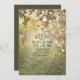 Dreamy, romantic vintage rehearsal dinner invitation with old trees path in the forest and hanging string lights on the tree branches. Perfect invite for outdoor wedding rehearsal and dinner with rustic country themes