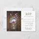 Rustic RSVPs featuring a mason jar filled with violet, purple, and lavender wildflowers with baby's breath and greenery and adorned with a purple ribbon. The back of the card features white string lights with a pale violet mason jar over a weathered barn wood background. If you would like this design on a matching product, or need help, please contact me through my store.