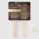 Keep guests cool and informed with this elegant double-sided wedding program hand fan. Features a faux wood background, gold floral accents, string lights, and space for ceremony details and wedding party names. A perfect touch for fall, rustic, or outdoor celebrations.