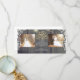 Rustic wood, vintage lace and enchanted string lights lights wedding thank you card with 2 wedding photos