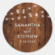 Rustic String Lights & Wood Wedding Classic Round Sticker