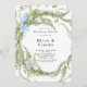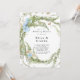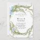 Design features a printed coloured floral element in shades of green and dusty blue watercolor florals wreath with baby blue butterflies on a canvas background. Calligraphy or type writing with the design artwork. Mix and match collection piece. Great for your wedding celebrations!