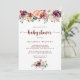 This rustic summer floral calligraphy baby shower invitation is perfect for a modern baby shower. The design features burgundy, pink and blush watercolor flowers with green leaves in a brownish stained background.