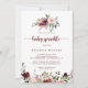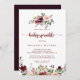 This rustic summer floral calligraphy baby sprinkle invitation is perfect for a modern baby shower. The design features burgundy, pink and blush watercolor flowers with green leaves in a brownish stained background.