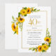 Pretty yellow sunflower floral 40th birthday party invitation. Yellow peonies and white daisies mingle with the sunflowers. A rectangular gold frame gives it an elegant vibe. 40th Birthday Celebration and the celebrant's name are written in gold. Very easy to customise. That back is white with a sunflower bouquet. This is a perfect for a summer birthday celebration.