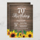 Rustic Sunflower 70th Birthday Invitation