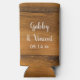 Keep your cans cool at your ranch or farm theme bridal shower or marriage reception with the charming Rustic Sunflower and Veil Country Wedding Favour Seltzer Can Cooler. Personalise it with the names of the bride and groom and ceremony date to create one of a kind barn party favours. This casual yet classy custom rustic inspo wedding can cooler features a quaint floral photograph of a yellow sunflower blossom and white bridal veil with a brown barn wood background.