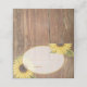 There are two big sunflowers in the corners, one above and one below the transparent oval.