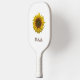 Boho rustic botanical Yellow Sunflower bloom pickleball paddle, with customizable script typography. Enjoy this personalized item for your favorite game.