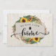 Send this rustic sunflower themed announcement to your friends and family to let them know you moved to a new home. The front design is simple with the word "home" appearing in a handwritten style calligraphy on light wood background accented with sunflowers and greenery. The backside allows you to announce your new address.